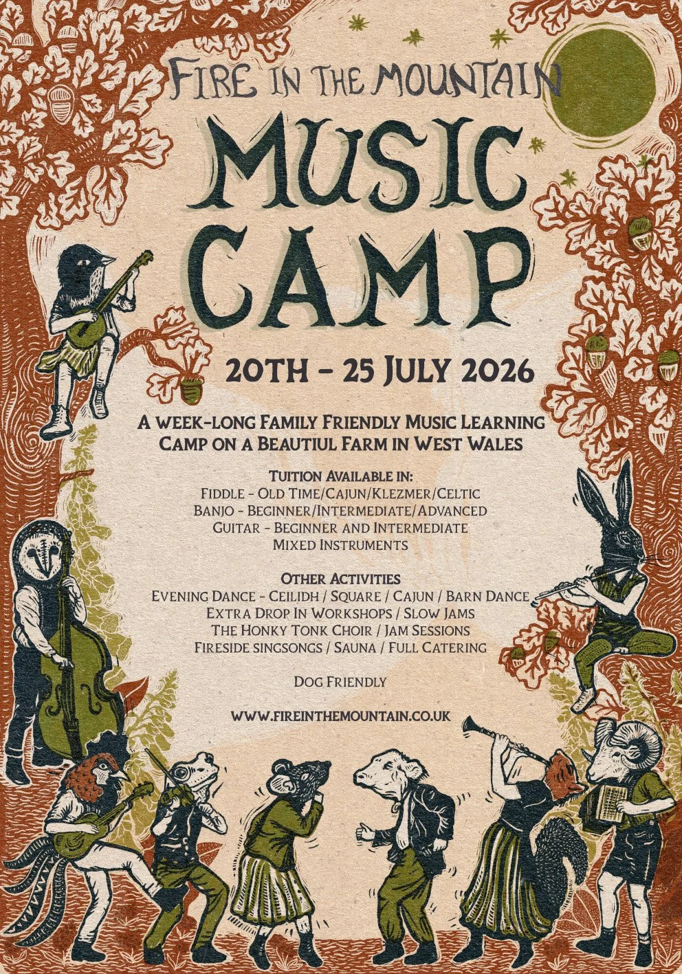 * We cannot help complete beginners on fiddle. If you have found one in your granny’s attic, or do not yet have the ability to play in tune or have never picked one up then we suggest you get some basic lessons in advance or book camping only on this occasion.
